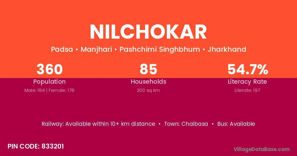 Chaibasa is the nearest town to Nilchokar village for major economic activities