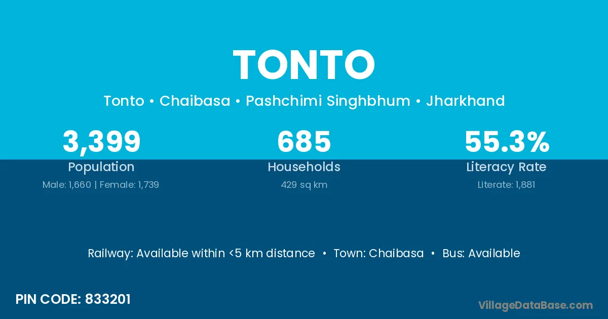 According to Census 2011 information, the village code of Tonto village is 833201.