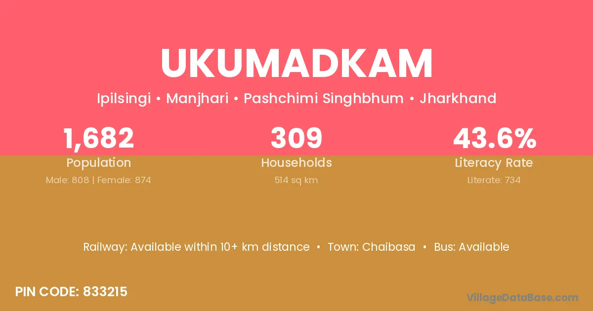 Chaibasa is the nearest town to Ukumadkam village for major economic activities