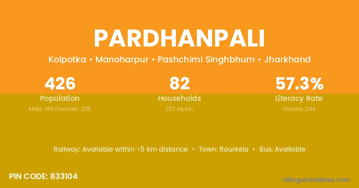 According to Census 2011 information, the village code of Pardhanpali village is 833104.