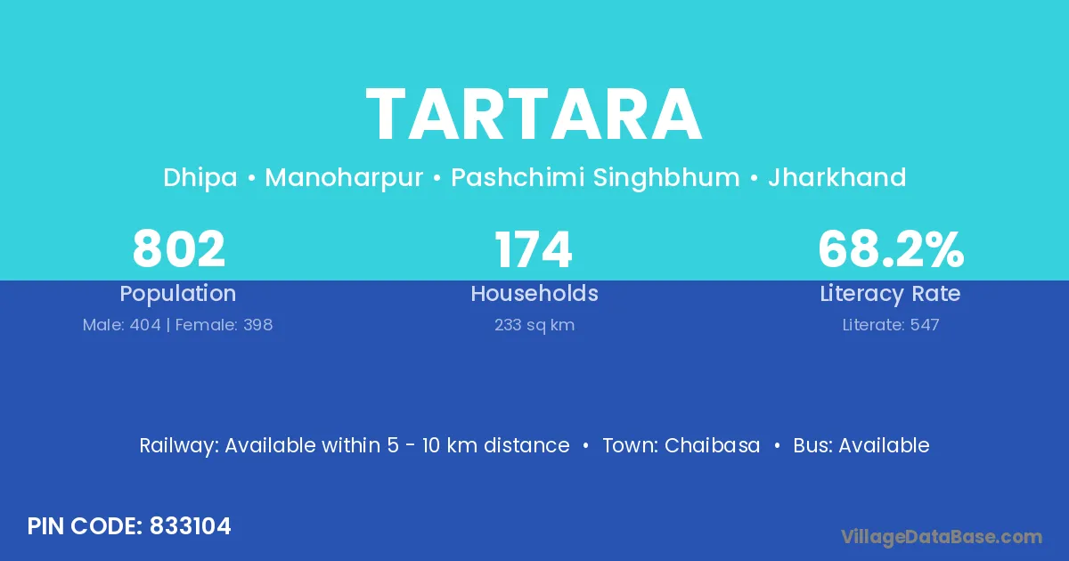 According to Census 2011 information, the village code of Tartara village is 833104.