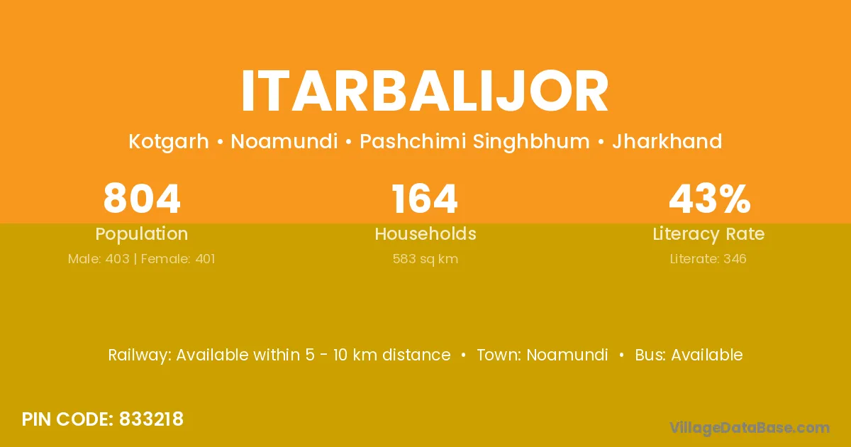 Itarbalijor village has a total population of 804 people, of which 403 are males and 401 are females.