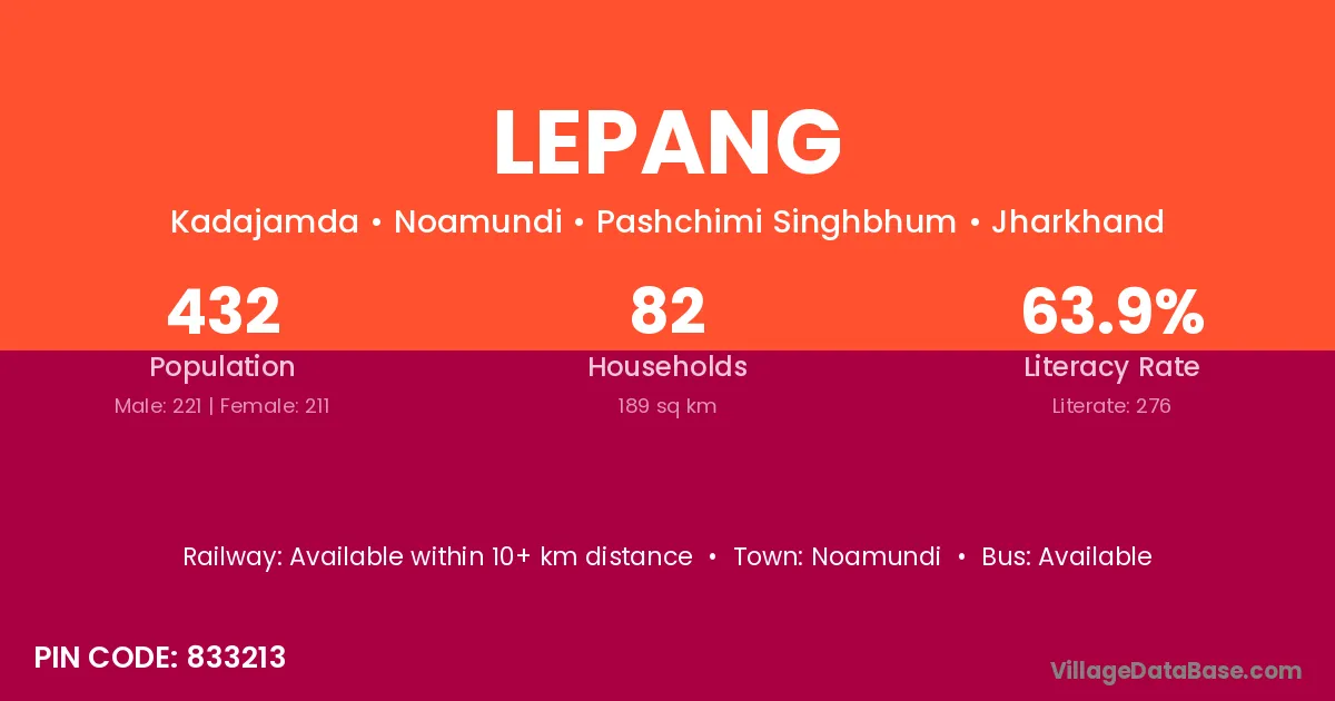 Lepang village has a total population of 432 people, of which 221 are males and 211 are females.