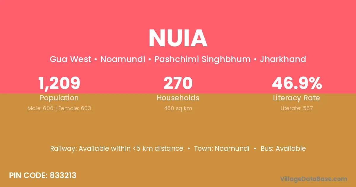 According to Census 2011 information, the village code of Nuia village is 833213.