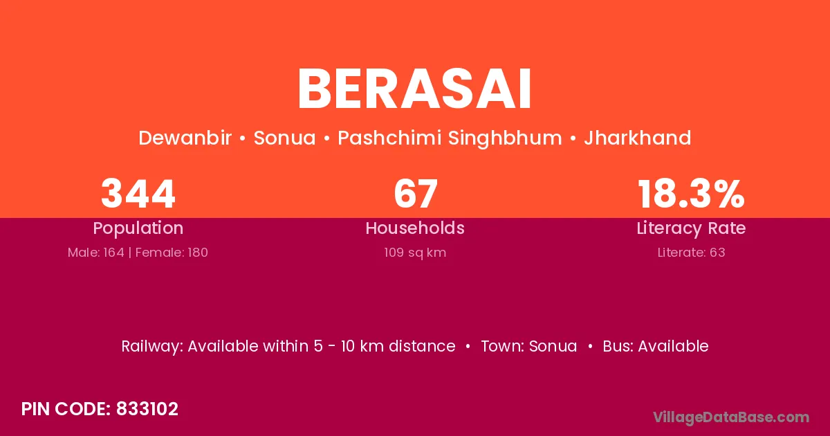 Berasai village is located in the Sonua Subdivision of the Pashchimi Singhbhum district in Jharkhand .