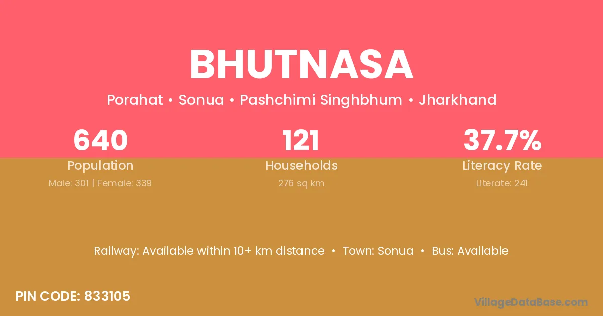 Bhutnasa village has a total population of 640 people, of which 301 are males and 339 are females.