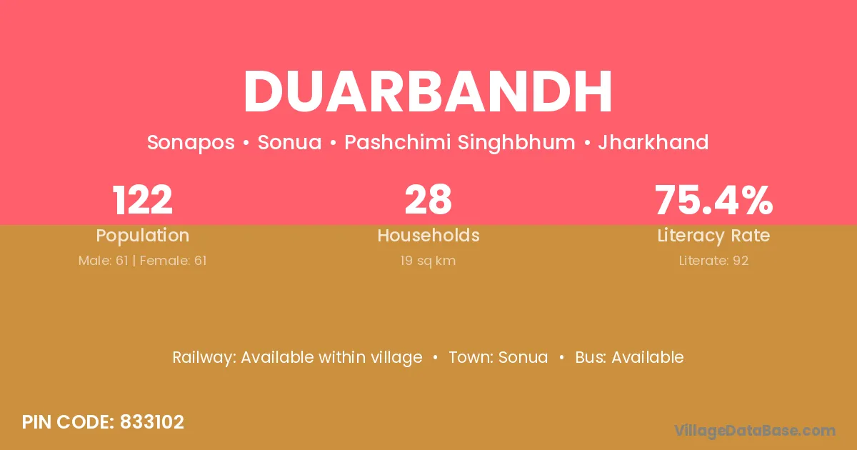 According to Census 2011 information, the village code of Duarbandh village is 833102.