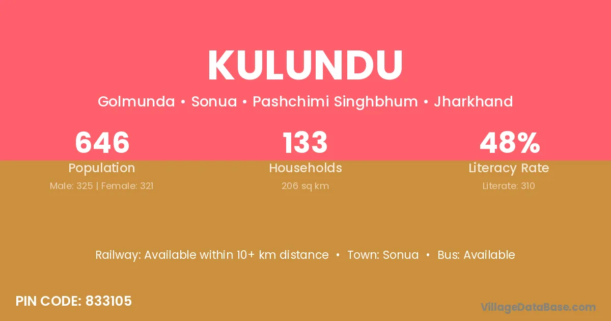 According to Census 2011 information, the village code of Kulundu village is 833105.