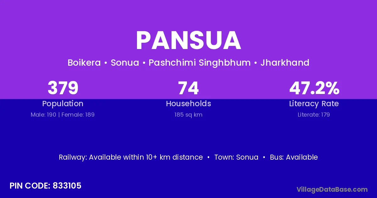 According to Census 2011 information, the village code of Pansua village is 833105.