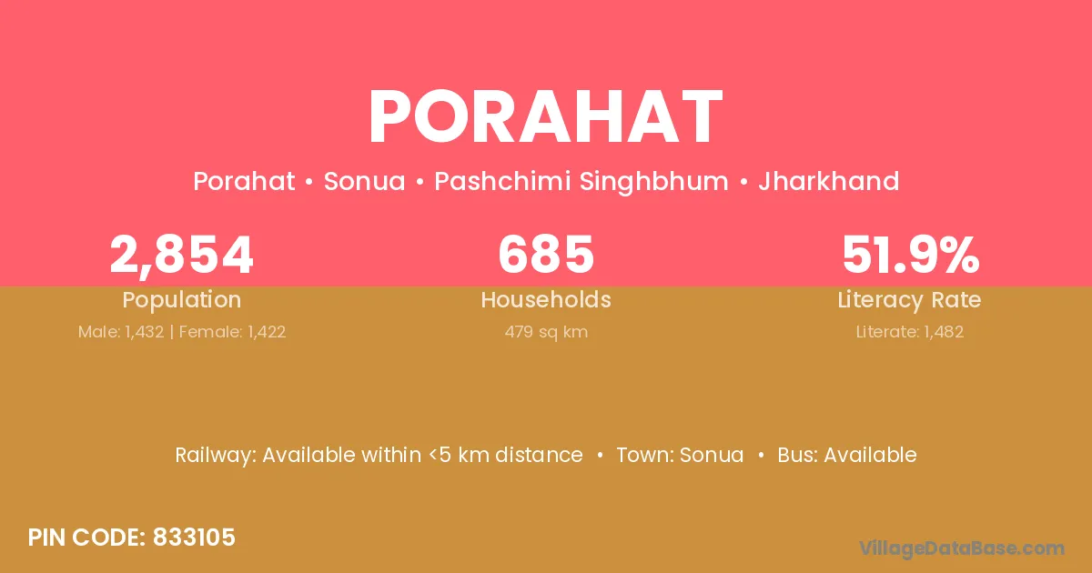 According to Census 2011 information, the village code of Porahat village is 833105.