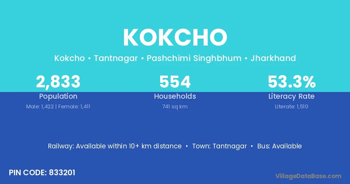 According to Census 2011 information, the village code of Kokcho village is 833201.