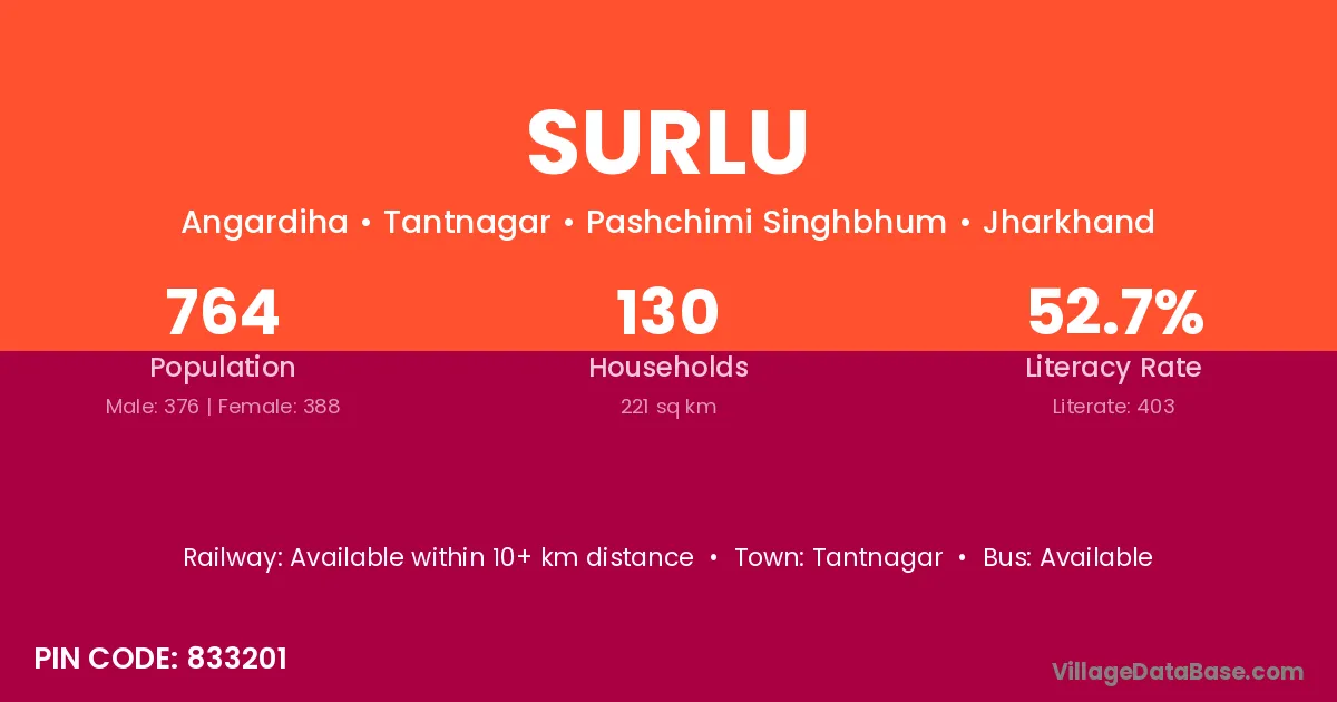 According to Census 2011 information, the village code of Surlu village is 833201.
