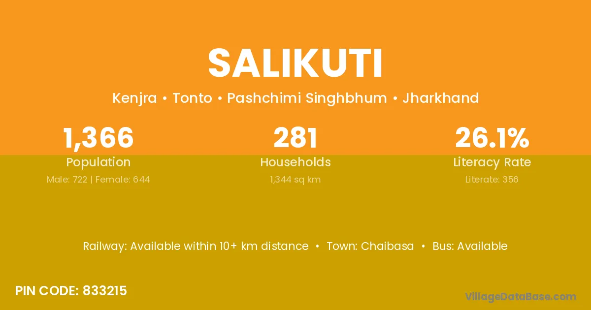 Chaibasa is the nearest town to Salikuti village for major economic activities