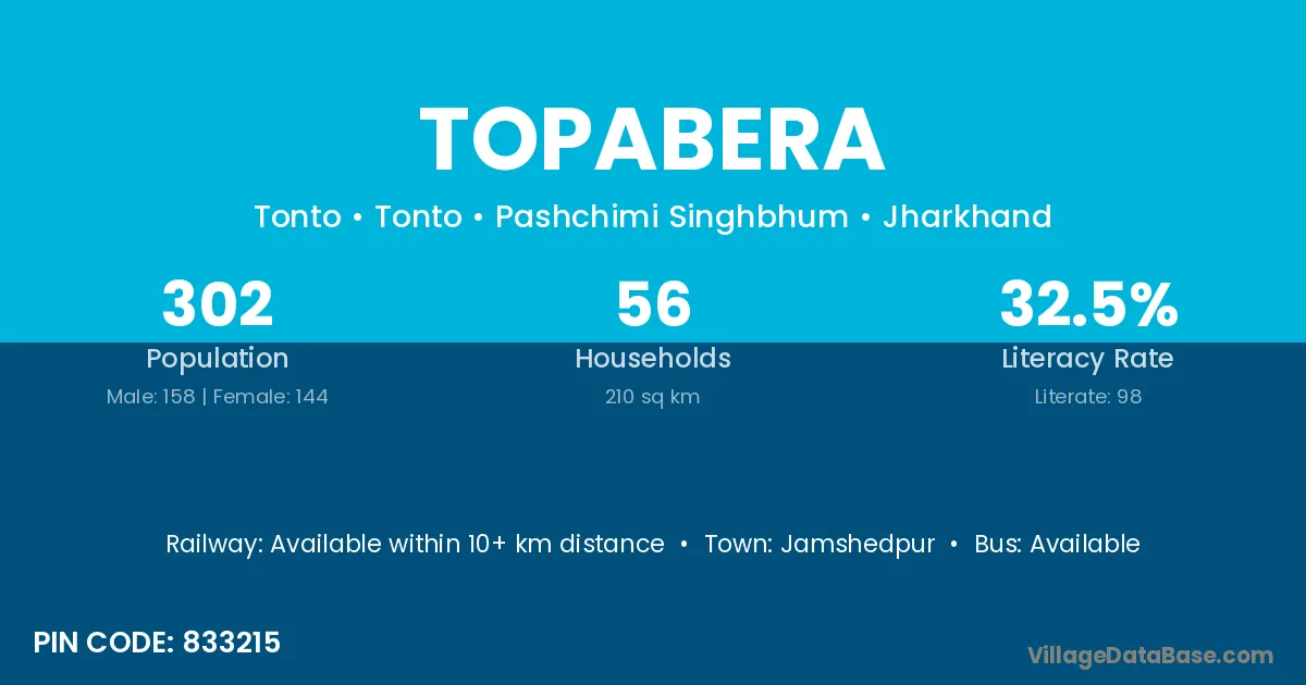 Jamshedpur is the nearest town to Topabera village for major economic activities
