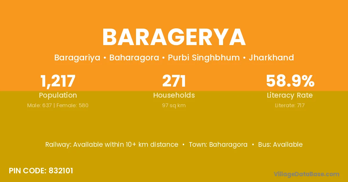 Baharagora is the nearest town to Baragerya village for major economic activities