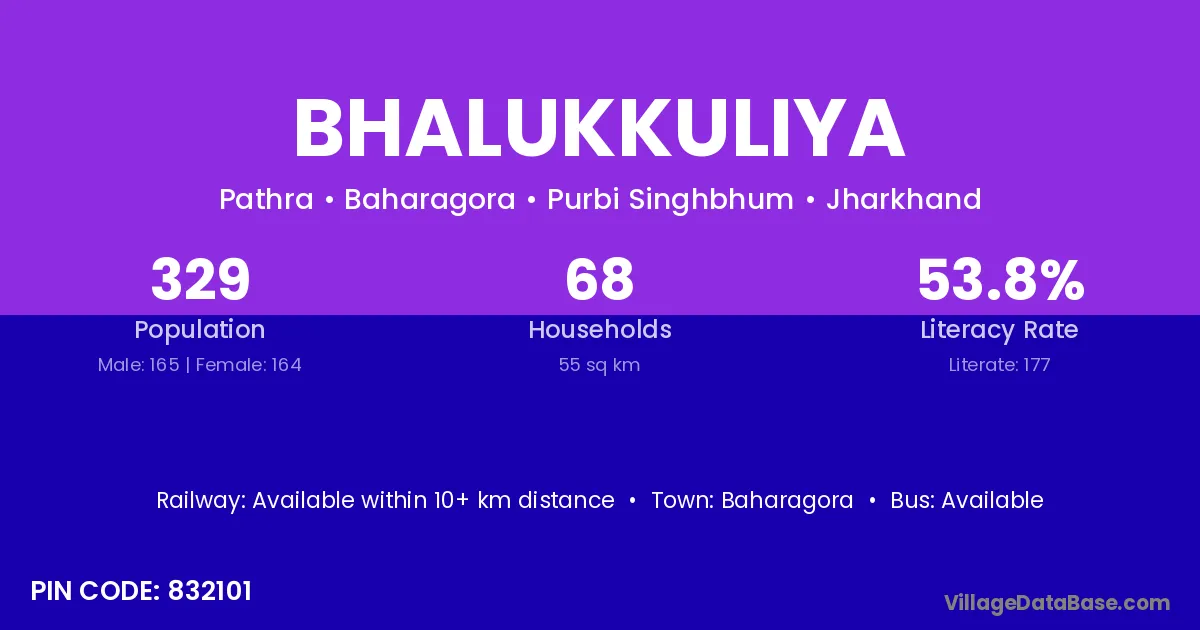 Baharagora is the nearest town to Bhalukkuliya village for major economic activities