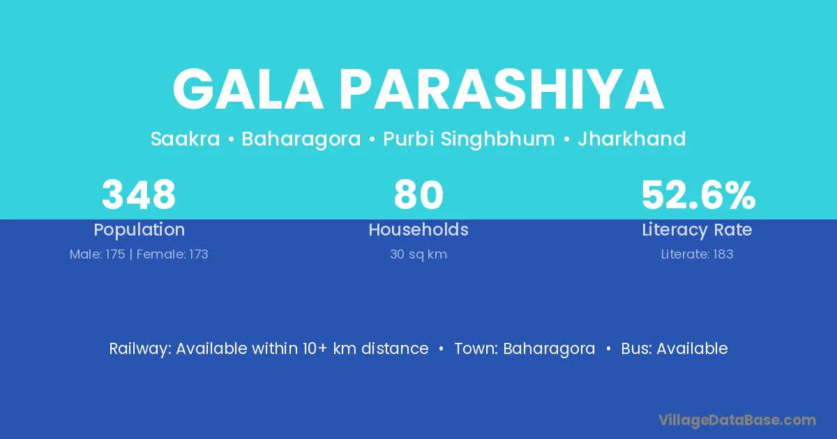 Gala Parashiya village has a total population of 348 people, of which 175 are males and 173 are females.
