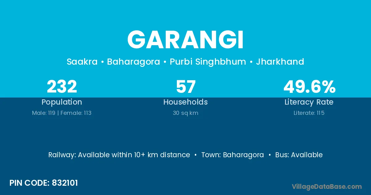 Baharagora is the nearest town to Garangi village for major economic activities