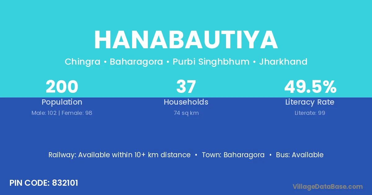 According to Census 2011 information, the village code of Hanabautiya village is 832101.