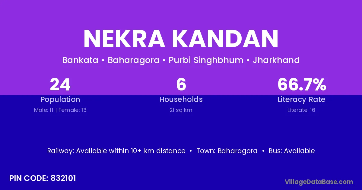Nekra Kandan village has a total population of 24 people, of which 11 are males and 13 are females.