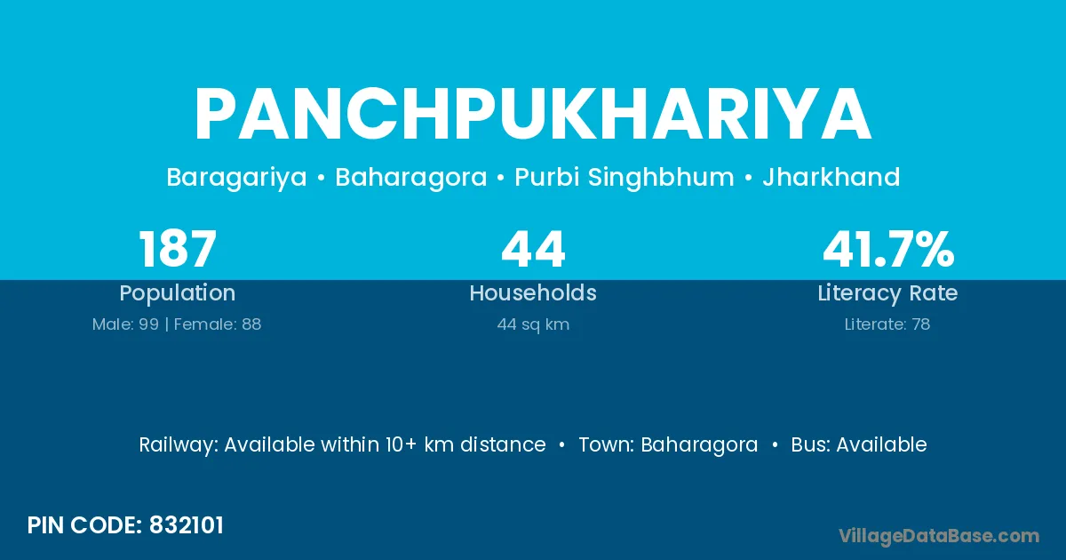 Baharagora is the nearest town to Panchpukhariya village for major economic activities