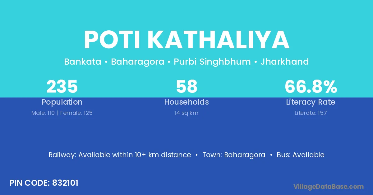 Poti Kathaliya village has a total population of 235 people, of which 110 are males and 125 are females.