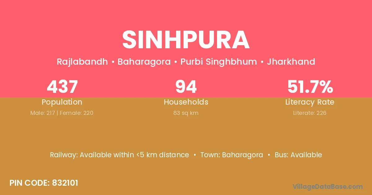 Sinhpura village has a total population of 437 people, of which 217 are males and 220 are females.