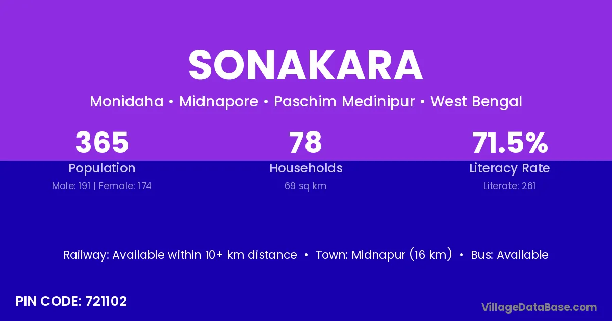 The literacy rate of Sonakara village is 52.60%. Male literacy stands at 59.14% and female literacy at 45.81%.
