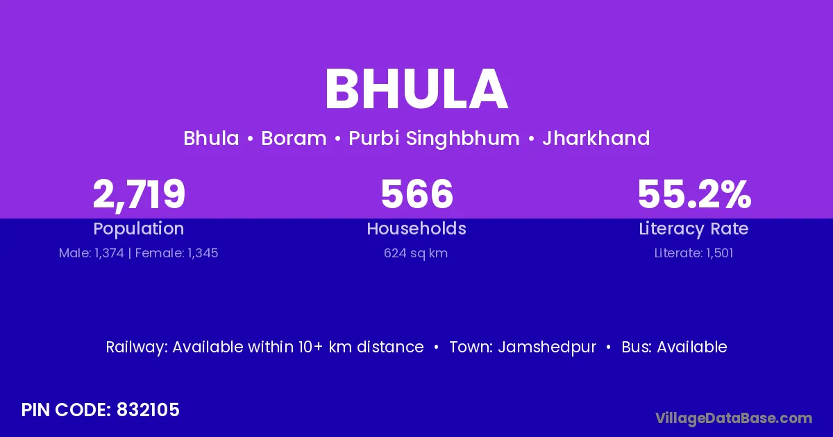 Jamshedpur is the nearest town to Bhula village for major economic activities