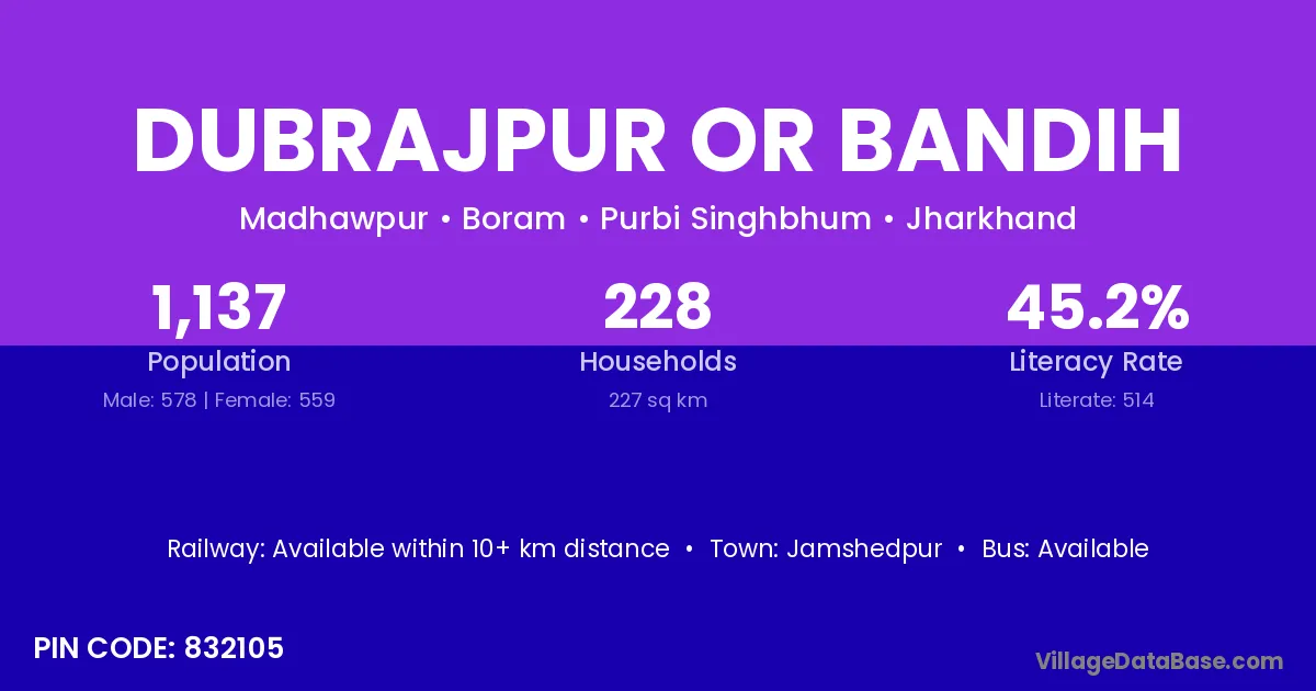 Dubrajpur Or Bandih village is located in the Boram Subdivision of the Purbi Singhbhum district in Jharkhand .