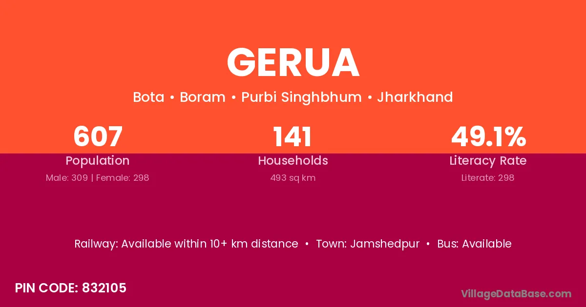 Jamshedpur is the nearest town to Gerua village for major economic activities
