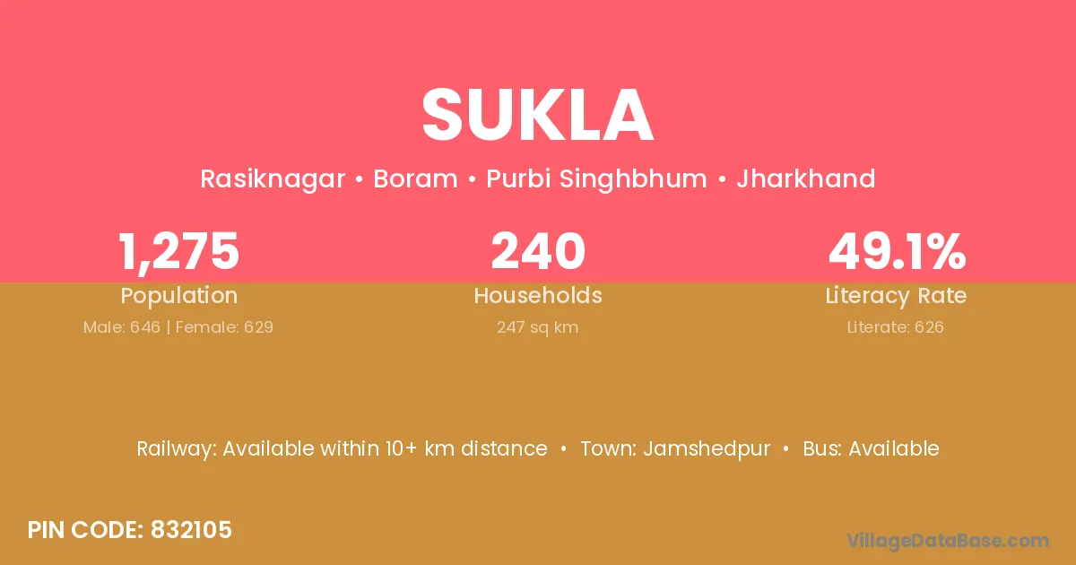 Jamshedpur is the nearest town to Sukla village for major economic activities