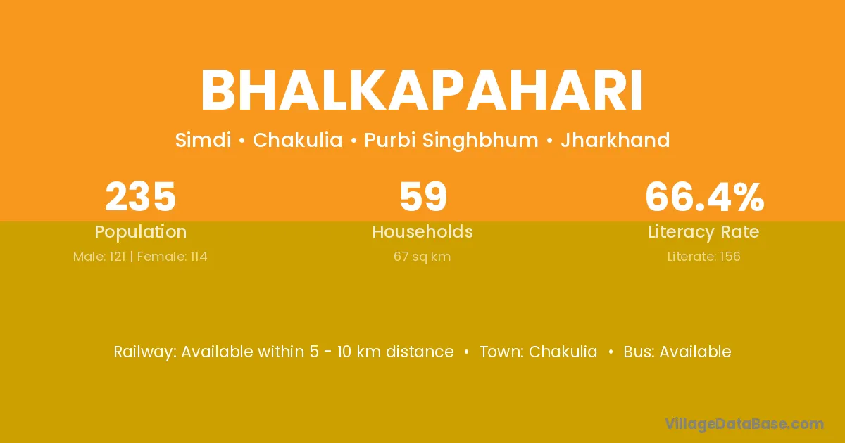 Bhalkapahari village has a total population of 235 people, of which 121 are males and 114 are females.