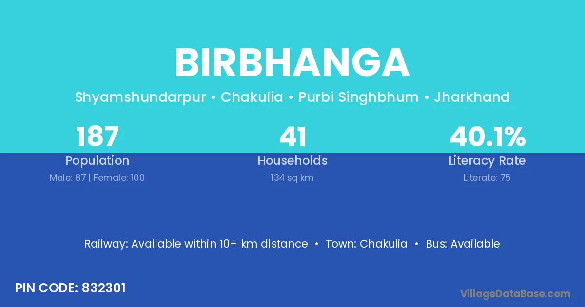 Chakulia is the nearest town to Birbhanga village for major economic activities
