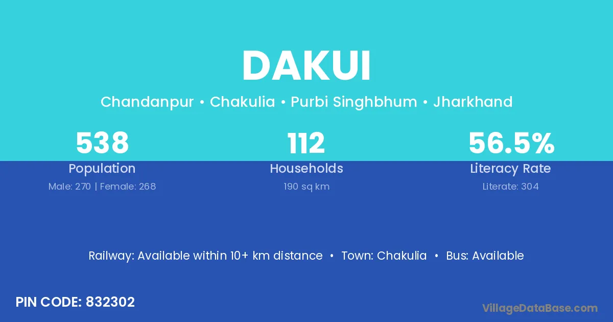 Dakui village is located in the Chakulia Subdivision of the Purbi Singhbhum district in Jharkhand .