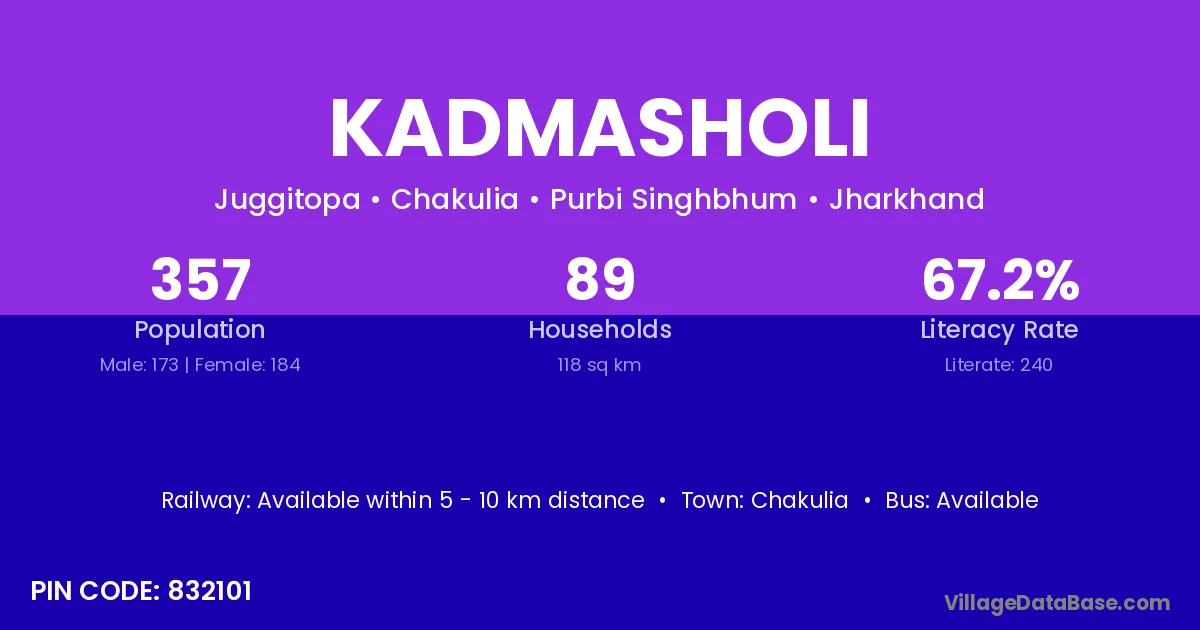 Chakulia is the nearest town to Kadmasholi village for major economic activities