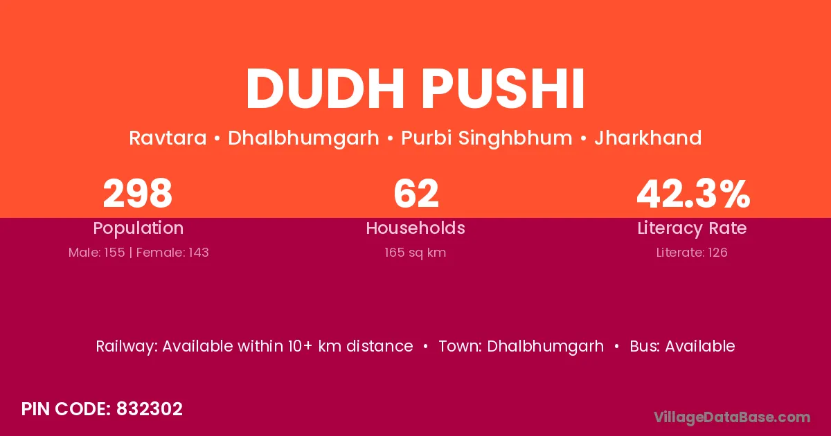 Dhalbhumgarh is the nearest town to Dudh Pushi village for major economic activities