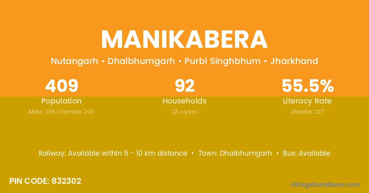 Dhalbhumgarh is the nearest town to Manikabera village for major economic activities
