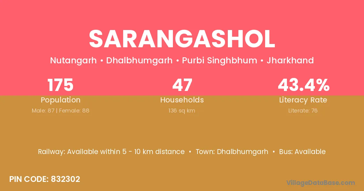 According to Census 2011 information, the village code of Sarangashol village is 832302.