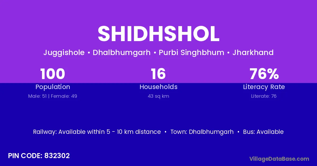 Shidhshol village is located in the Dhalbhumgarh Subdivision of the Purbi Singhbhum district in Jharkhand .