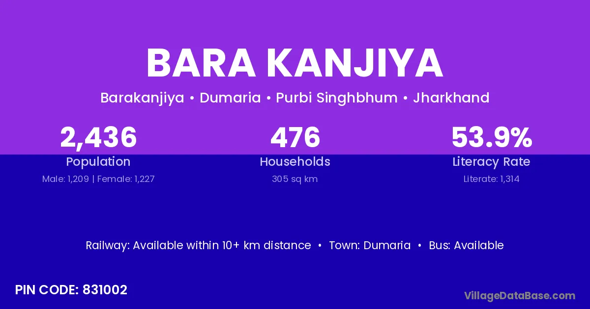 Bara Kanjiya village has a total population of 2,436 people, of which 1,209 are males and 1,227 are females.