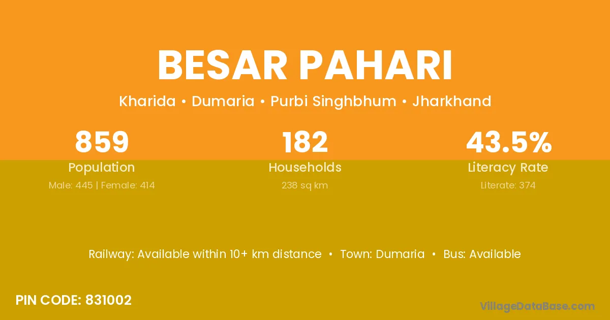Besar Pahari village has a total population of 859 people, of which 445 are males and 414 are females.