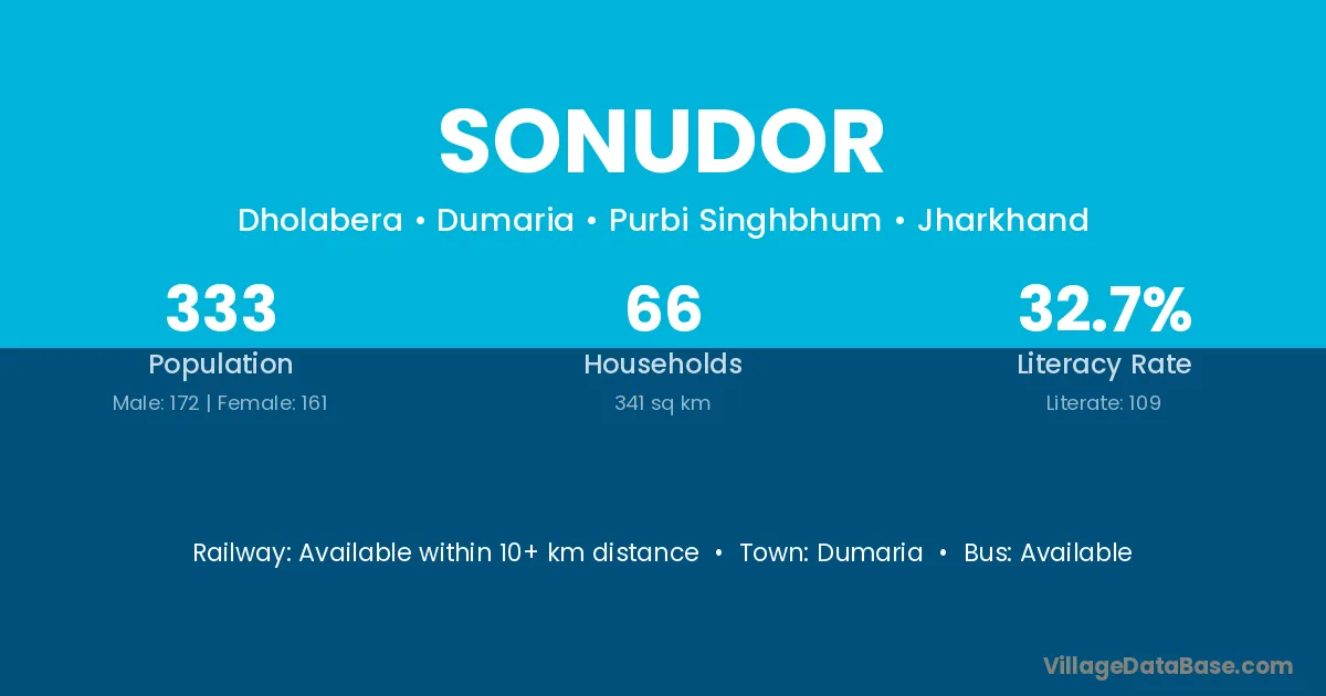 Sonudor village has a total population of 333 people, of which 172 are males and 161 are females.