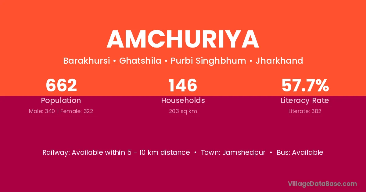 Amchuriya village has a total population of 662 people, of which 340 are males and 322 are females.