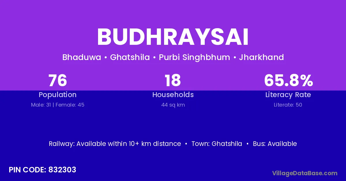 Ghatshila is the nearest town to Budhraysai village for major economic activities