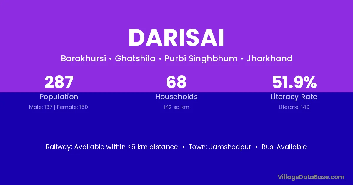 Jamshedpur is the nearest town to Darisai village for major economic activities