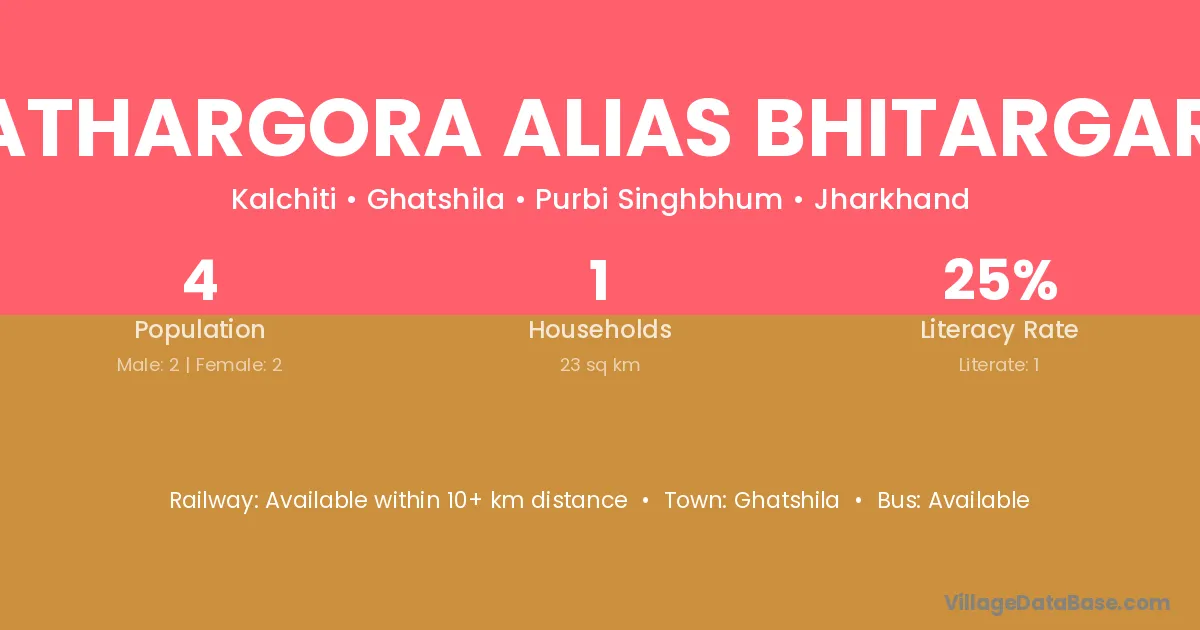 Pathargora Alias Bhitargarh village has a total population of 4 people, of which 2 are males and 2 are females.