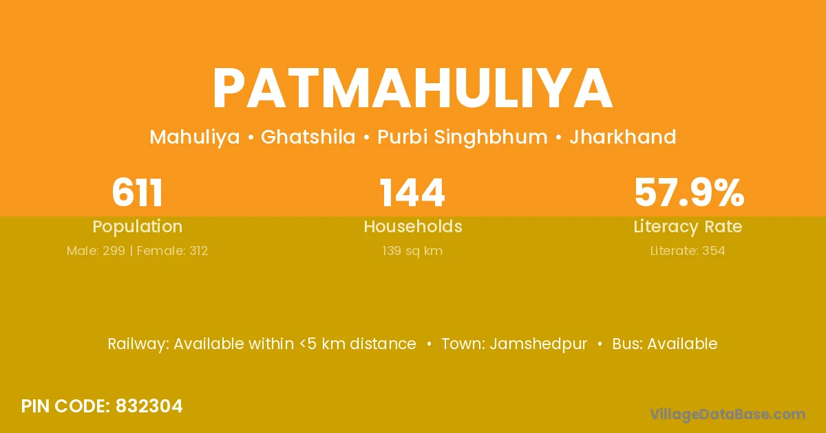 Patmahuliya village has a total population of 611 people, of which 299 are males and 312 are females.
