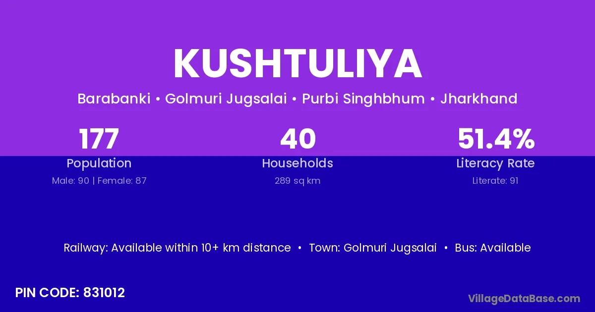 Golmuri Jugsalai is the nearest town to Kushtuliya village for major economic activities