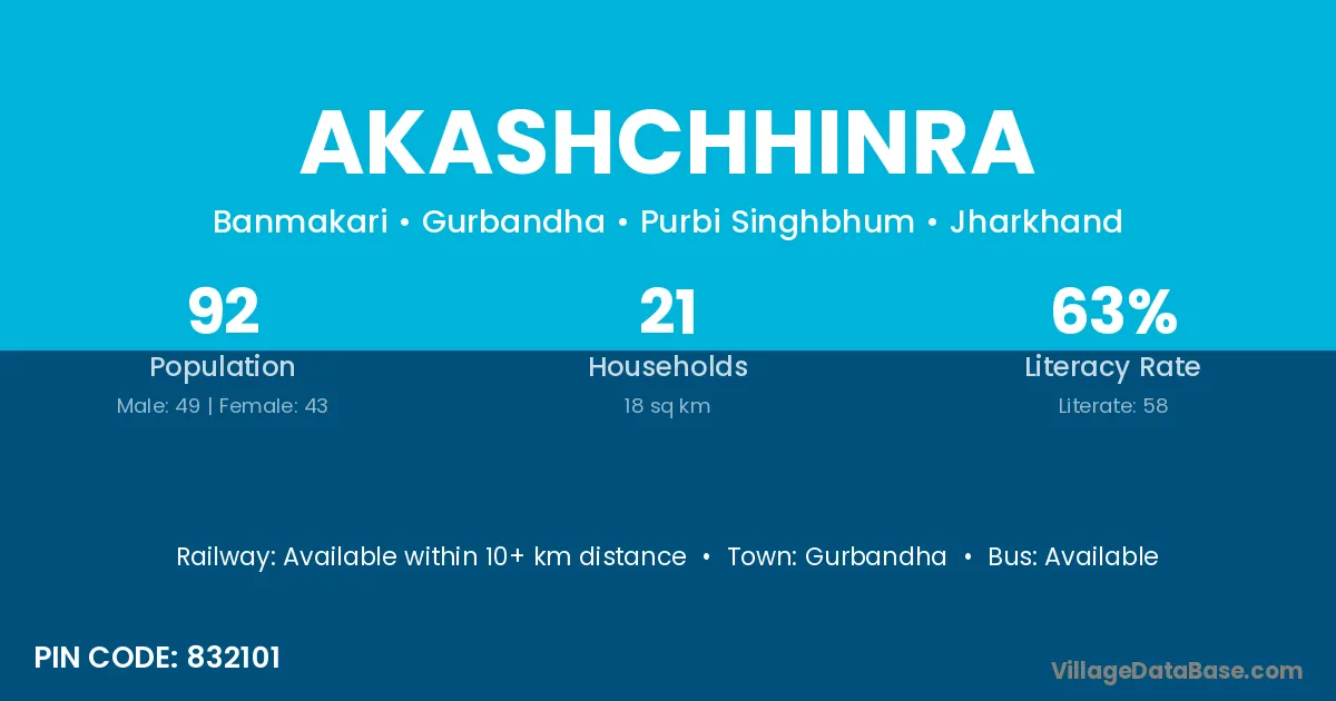 Akashchhinra village is located in the Gurbandha Subdivision of the Purbi Singhbhum district in Jharkhand .